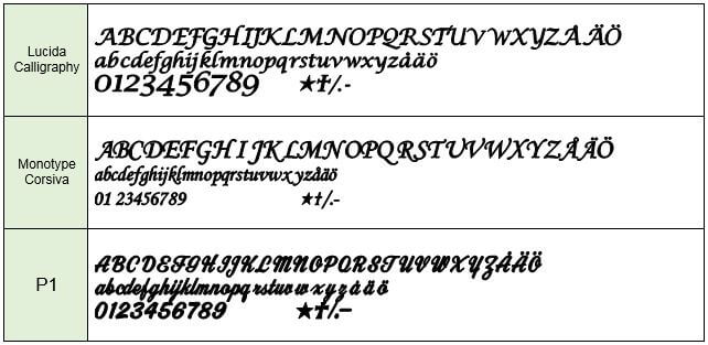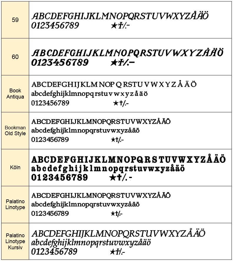 Det finns 100-tals dekorer att välja mellan. Man kan också välja en egen symbol/dekor som vi ritar av.